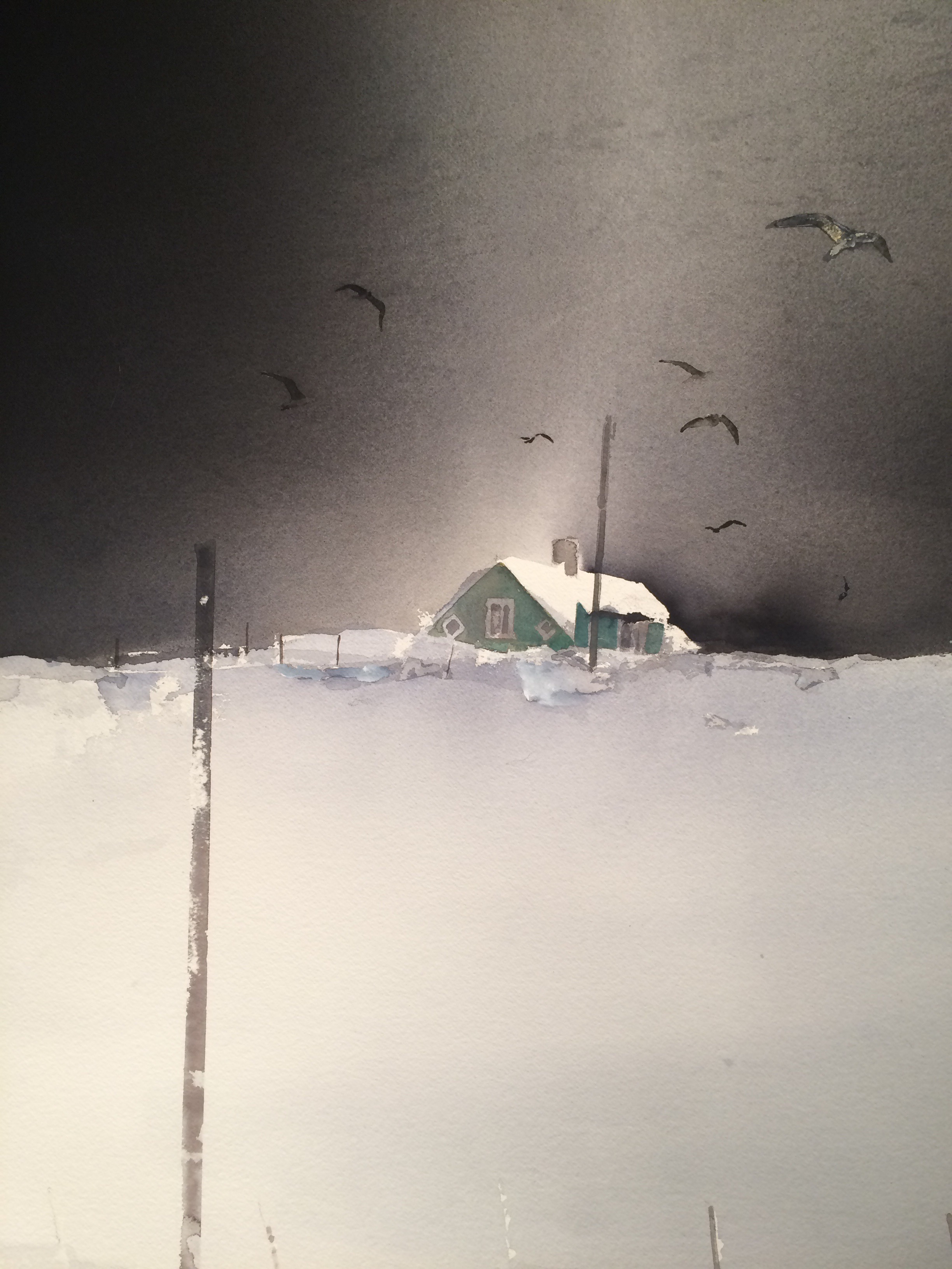 So it was, a couple weeks ago when I finally managed to fit a visit to this show into my typical Saturday-in-Minneapolis morning. “The Watercolor Worlds of Lars Lerin” was about to finish its run at The American Swedish Institute and I was determined to check it out, even if my plans on the way there included a 10-mile run,  a yoga class, and a change of clothes, but no intervening shower. I knew nothing about Mr. Lerin and don’t have any particular attachment to the watercolor medium. However, every show I’ve seen at ASI has been excellent, I had read that birds are featured in several of the works (ornithology is a growing interest for me), and special Lenten Swedish treats were available at the museum’s attached restaurant, FIKA. Lent was about to end; cardamom and sugar taunted me.