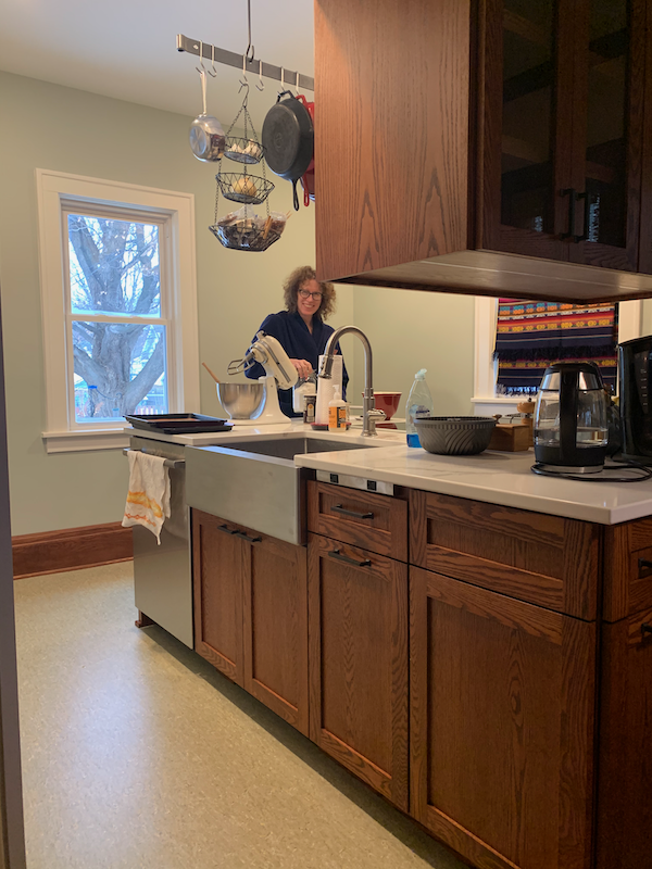 Two months, a few clams, about 78 crock-pot, toaster, kettle and electric griddle meals and two yoga classes taught from the TV room later: BAM! New kitchen (pictured at the top of this post). We are so grateful to our professional, timely and considerate designer, mentioned above, and builder (Dzurik Construction)!