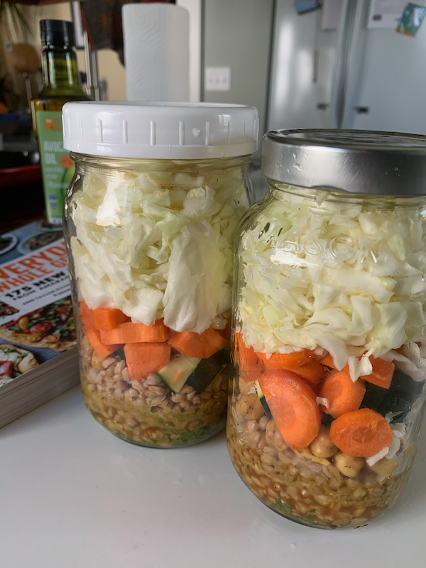 Regarding the diet/cleanse/lifestyle change: I’m not sure what took so long, but I’ve discovered mason jar salads, thanks to the program. Suddenly, I’m enjoying salads a lot more often, either as salads or quick stir-fry meals.