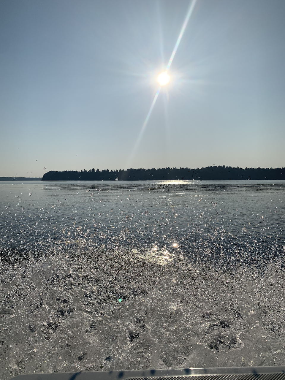 It’s hard to pick a favorite part, but I was so happy to finally enjoy a ride in Robbi’s new C Dory fishing boat! The weather and tides were amenable, midweek. She took us on a smooth, cooling, and scenic trip around Anderson Island, checking out the Nisqually Delta and enjoying a picnic dinner on the boat. We’d heard rumors of an orca sighting here, recently but we only saw porpoises, a seal, lots of jellies, more than a few crested cormorants and a guillemot or two. Countless gulls because: sea.
