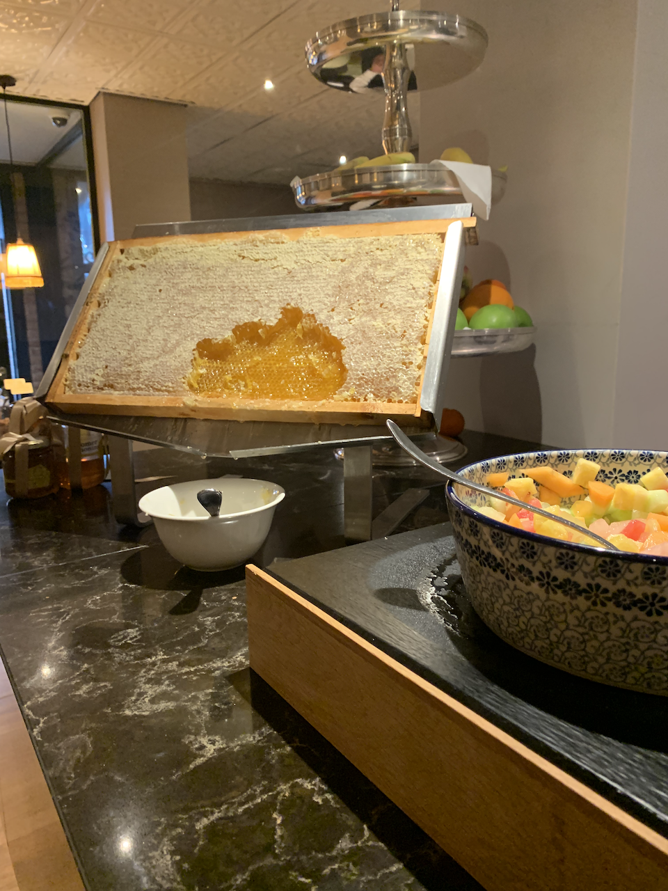 - Item on a breakfast buffet: Honey from on-prem hives, to go on my toast.
