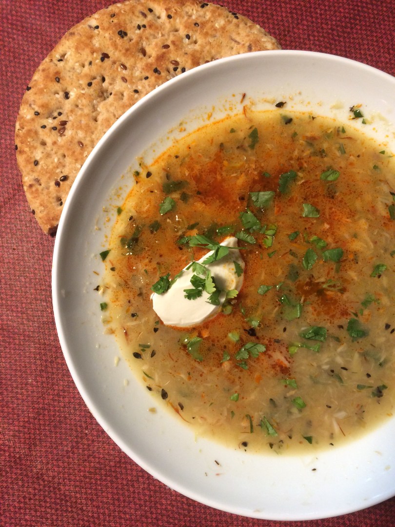 Here’s the soup recipe: Garlic Soup with Harissa.