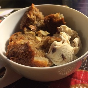 I made up a loaf of this Browned Butter Apple Bread earlier this week. It was best fresh out of the oven (the quantity of butter in it made for a delightfully satisfying crunchy top). However, it was more than good as a reward for a tough run on wet, thick spring snow out at Afton State Park yesterday. Be sure to have some aged cheddar (Cougar Gold worked well… or try any dairy, such as ice cream) on hand, as well. It won’t smear onto the bread, but is a good complement.