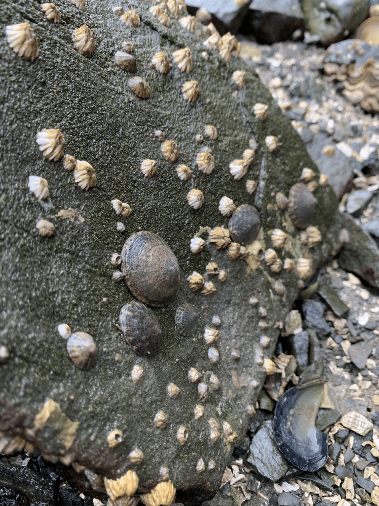 Still: we had several special interactions with wildlife: we also had seen river otters, a few times, including having one slink out of or Reid Harbor, within a few feet of us, one darkening evening. Each day we’d see a few seals, poking up their doggy snouts in the water. A few beaches had oyster beds, and there was lots to see in various tidepools.