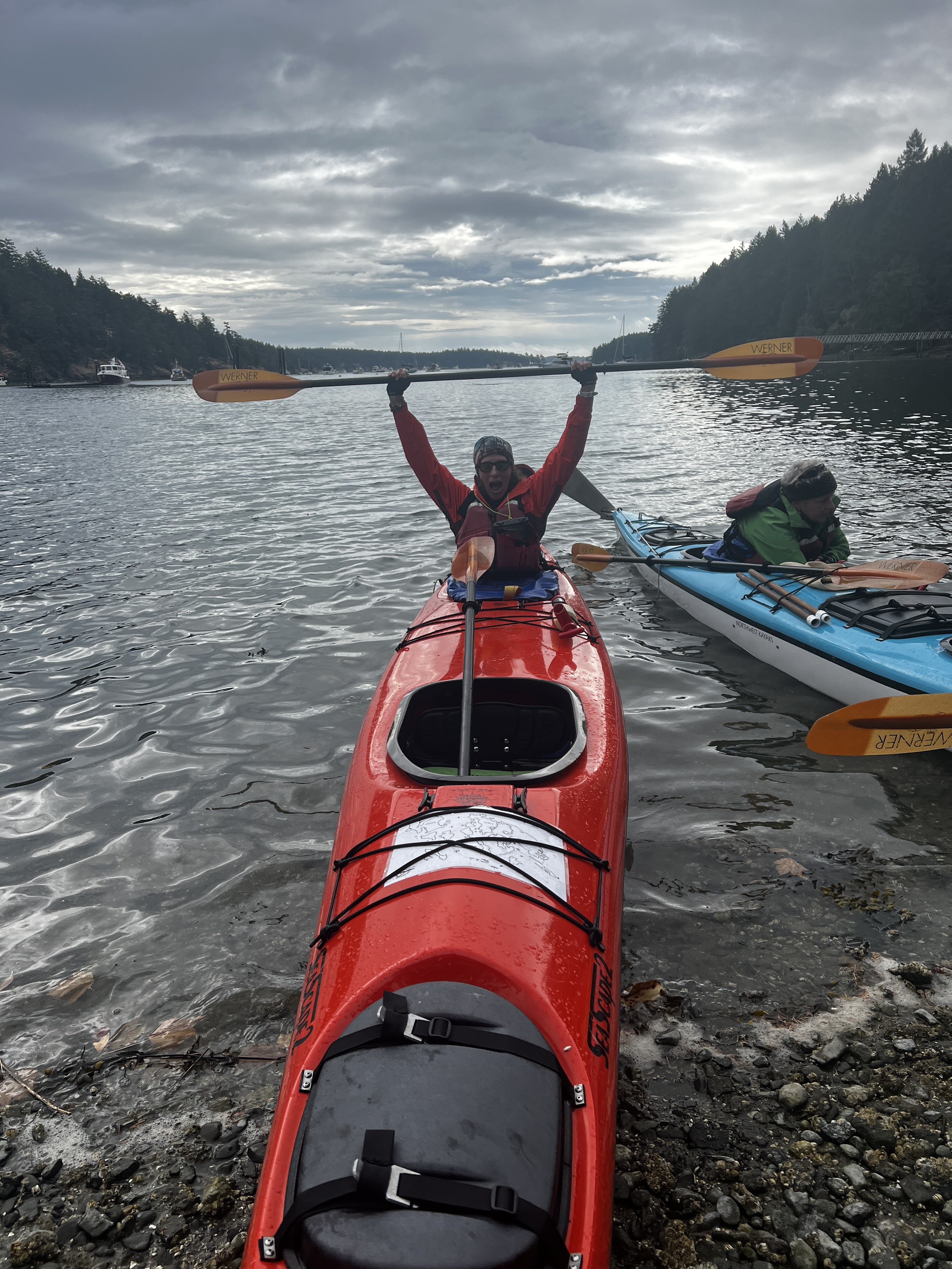 Speaking of body: I’d never kayaked more than an intro class, every 10 years or so (REI does a great job!) and maybe a few hours on a Minnesota lake or on some calm Puget Sound waters (at Camp Seymour!). At least one of those classes had me doing kayak rolls, though not my most recent one. It was fairly unlikely we’d need to do that, in the tandem kayaks we used on this tour.